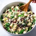 Keywords: apple cranberry quinoa salad, healthy quinoa salad, spinach salad with quinoa, goat cheese salad, autumn salad, easy quinoa recipes