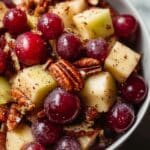 A fresh and vibrant Apple Grape Salad combining crisp diced apples and juicy halved grapes with toasted pecans or walnuts, all tossed in a sweet and spicy cinnamon-honey dressing. This easy no-cook salad is perfect as a light snack or a refreshing side dish.