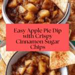 This Apple Pie Dip recipe features tender, cinnamon-spiced apples cooked into a thick, sweet dip that’s perfect for scooping with homemade cinnamon sugar tortilla chips. With a smooth and delicious apple filling complemented by crispy, golden baked tortilla wedges, this dessert offers a nostalgic twist on traditional apple pie in a fun, shareable dip form.