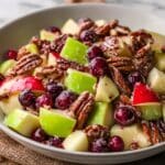 A refreshing and delicious Apple Salad combining crisp apples, juicy red grapes, crunchy pecans, and chewy dried cranberries, all tossed in a creamy, tangy Greek yogurt dressing sweetened with honey. Perfect as a light snack, side dish, or a healthy dessert option.