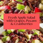 This apple salad with grapes, pecans, and dried cranberries is a refreshing and crunchy dish perfect for any time of day. The combination of sweet fruit and tangy dressing creates a delightful balance of flavors that’s both satisfying and easy to prepare.