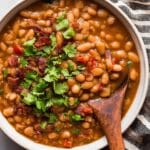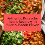 Keywords: Borracho Beans, Mexican beans, Pinto beans recipe, Beer beans, Bacon beans, Slow simmered beans, Pico de gallo beans