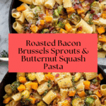 This Bacon Brussels Sprouts Butternut Squash Pasta is a comforting and flavorful dish combining roasted autumn vegetables with crispy bacon, tossed with pasta and finished with lemon juice, parmesan, and fresh thyme for a perfect balance of savory and fresh flavors.