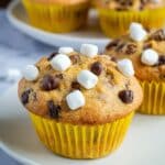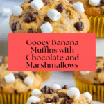 Keywords: banana muffins, chocolate chip muffins, banana dessert, easy muffins, homemade muffins, graham cracker, marshmallow muffins, breakfast muffins