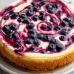 This Berry Swirl Cheesecake features a creamy cream cheese filling accented with a vibrant, homemade mixed berry puree swirl. The graham cracker crust provides a buttery, crunchy base that perfectly complements the rich and tangy cheesecake. Baked in a water bath for a smooth texture and finished with a fruity swirl, this dessert is a delicious and visually stunning treat ideal for any occasion.