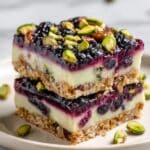 Delight in these luscious Blackberry Pistachio Dream Bars, featuring a buttery crumbly crust topped with a moist and fruity blackberry and pistachio filling. Perfect as a sweet treat or dessert, these bars combine fresh blackberries’ tartness with the crunch of pistachios for an irresistible texture and flavor.