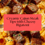 This Cajun Steak Tips in Cheesy Rigatoni Parmesan Sauce recipe combines tender, spiced steak bites with creamy, cheesy rigatoni pasta for a flavorful and satisfying meal. The steak is seared to perfection with Cajun seasoning, then mixed into a rich Parmesan and cream sauce, creating a perfect balance of spice and indulgence.