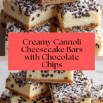 Keywords: cannoli cheesecake bars, ricotta cheesecake bars, mascarpone cheesecake, chocolate chip cheesecake bars, easy cheesecake bars, Italian dessert bars
