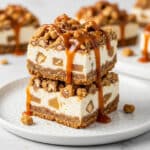 10. Serve: Cut the chilled bars into squares. Drizzle each bar generously with the warm caramel sauce just before serving for an extra indulgent touch.