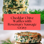 These Cheddar Chive Waffles are savory, crispy, and packed with sharp cheddar cheese and fresh chives, making them a perfect hearty breakfast or brunch option. Served with a flavorful Rosemary Sausage Gravy, this comforting dish combines classic waffle texture with bold, savory flavors for an irresistible meal.