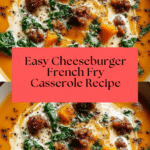 This Cheeseburger French Fry Casserole is a hearty, comforting dish that combines classic cheeseburger flavors with crispy baked French fries. Ground beef is seasoned and mixed with condiments, layered over fries, topped with melted cheddar cheese, and baked to perfection. It’s an easy, crowd-pleasing meal perfect for casual dinners and family gatherings.