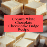 This creamy and indulgent Cheesecake Fudge combines the rich flavors of white chocolate and classic cheesecake into a deliciously smooth sweet treat. Easy to make and no baking required, it’s perfect for dessert lovers looking for a quick and impressive confection.