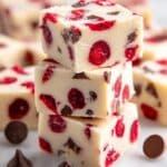 Keywords: Cherry Garcia fudge, white chocolate fudge, dried cherry fudge, no bake fudge recipe, easy fudge dessert