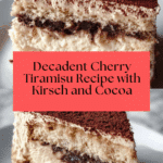 This Cherry Tiramisu offers a delightful twist on the classic Italian dessert, combining rich mascarpone cream, coffee-soaked sponge fingers, and juicy cherries infused with Kirsch. Perfectly layered and decorated with dark chocolate and cocoa powder, this no-bake dessert is a luscious treat ideal for any occasion.