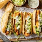 These Chicken Caesar Sandwiches combine crispy, golden-breaded chicken cutlets with a creamy, homemade Caesar dressing and garlic butter spread, all layered inside toasted hoagie rolls for a deliciously satisfying meal.