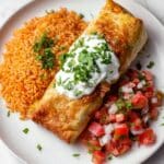 Deliciously crispy Chicken Chimichangas filled with a flavorful mixture of shredded chicken, cheeses, and spices, pan-fried to golden perfection. Perfectly paired with guacamole, sour cream, salsa, and fresh cilantro for a satisfying Mexican-inspired meal.