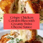 Keywords: Chicken Cordon Bleu, Swiss Cheese Sauce, Panko Breadcrumbs, Stuffed Chicken Breast, Classic Comfort Food