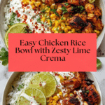 This Chicken Rice Bowl is a vibrant and satisfying meal perfect for any day of the week. Packed with flavorful grilled chicken, charred corn, fresh vegetables, and a zesty lime crema, it comes together quickly and is sure to please the whole family.