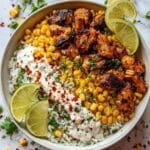 This Chicken Rice Bowl is a vibrant and satisfying meal perfect for any day of the week. Packed with flavorful grilled chicken, charred corn, fresh vegetables, and a zesty lime crema, it comes together quickly and is sure to please the whole family.