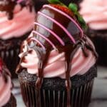 - Step 20: Optionally, spoon extra ganache over the frosting. Garnish cupcakes with the chocolate covered strawberries.
