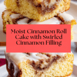 Keywords: Cinnamon Roll Cake, cinnamon cake, cinnamon swirl cake, easy cinnamon dessert, vanilla cinnamon cake, marbled cake, breakfast cake, glazed cake