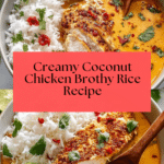 Coconut Chicken Brothy Rice is a comforting and flavorful dish perfect for a cozy meal. Tender chicken thighs simmer in a fragrant coconut and spice-infused broth served with fluffy rice and fresh herbs.