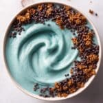 This Cookie Monster Smoothie Bowl is a vibrant and nutrient-packed breakfast or snack option featuring a creamy blue spirulina smoothie base topped with healthy, homemade vegan cookie dough, chocolate-covered chia seeds, and cacao nibs. It’s a delicious and visually stunning treat that combines indulgence with wholesome ingredients.