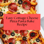 Keywords: cottage cheese pasta bake, pizza pasta bake, baked pasta recipe, easy casserole, comfort food, mozzarella pasta bake, Italian-American dinner