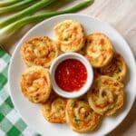 These Crab Rangoon Pinwheels are a delicious appetizer featuring flaky puff pastry filled with a savory blend of cream cheese, imitation crab meat, mozzarella, garlic, and green onions. Baked to golden perfection and brushed with egg wash for a beautiful finish, they make a perfect finger food for parties or casual gatherings, especially when paired with Thai sweet chili sauce or spicy mayonnaise.