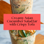 This Creamy Asian Cucumber Salad Bowl is a refreshing and flavorful plant-based dish featuring thinly sliced cucumber, crispy baked tofu, and a vibrant mix of vegetables, all tossed in a creamy, spicy dressing. Perfect for a quick lunch or light dinner, this salad offers a delightful combination of crunchy textures and bold flavors inspired by Asian cuisine, easy to prepare and enjoy straight from a jar or served over rice or noodles.