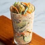 This Creamy Asian Cucumber Salad Bowl is a refreshing and flavorful plant-based dish featuring thinly sliced cucumber, crispy baked tofu, and a vibrant mix of vegetables, all tossed in a creamy, spicy dressing. Perfect for a quick lunch or light dinner, this salad offers a delightful combination of crunchy textures and bold flavors inspired by Asian cuisine, easy to prepare and enjoy straight from a jar or served over rice or noodles.