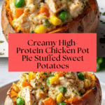This Creamy High-Protein Chicken Pot Pie Stuffed Sweet Potatoes recipe offers a comforting twist on classic pot pie fillings, packed inside naturally sweet and tender roasted sweet potatoes. It’s a nourishing, flavorful meal that’s easy to prepare and perfect for busy weeknights.