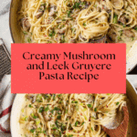 This Creamy Mushroom and Leek Pasta combines tender sautéed leeks and earthy cremini mushrooms in a luscious Gruyere cheese sauce. The sauce is enriched with heavy cream and brightened with white cooking broth, tossed with perfectly cooked fettuccine or linguine for a comforting and elegant vegetarian meal.