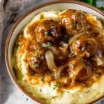 These meatballs are delicious served over mashed potatoes, rice, egg noodles, or even crusty bread to soak up the flavorful gravy.