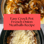Keywords: Crock Pot Meatballs, French Onion, Slow Cooker Recipe, Gruyere Cheese Meatballs, Comfort Food, Easy Dinner