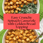 This Crunchy Spinach Casserole is a creamy, comforting side dish featuring tender sautéed spinach and celery baked with a savory mushroom soup base, topped with golden, buttery bread cubes for a delightful crunch. Perfect for family dinners and holiday gatherings.