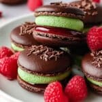 These Dark Chocolate Raspberry Macarons are delicate French confections featuring crisp almond meringue shells filled with a rich dark chocolate ganache and a burst of tangy raspberry jam. Perfect for special occasions or as an elegant treat, these macarons combine smooth textures and a balance of sweet and tart flavors.
