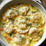 This comforting Dill Pierogi Soup combines tender potatoes, carrots, and classic potato and cheese pierogi simmered in a flavorful vegetable broth, enhanced by fresh dill and a hint of garlic and onion. Served hot with an optional dollop of sour cream, it’s a hearty, warming dish perfect for any season.