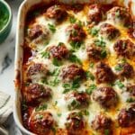 This Dump and Bake Meatball Casserole is a convenient and delicious one-dish meal perfect for busy weeknights. Combining frozen meatballs, uncooked pasta, marinara sauce, and seasonings, everything is mixed in a baking dish and cooked in the oven until bubbly and topped with melted mozzarella cheese. It’s a comforting, hearty casserole that requires minimal prep but delivers maximum flavor.