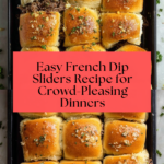 These Easy French Dip Sliders feature tender roast beef, melted provolone, and caramelized onions on soft sweet rolls, baked to golden perfection and served with a flavorful au jus for dipping. Perfect for parties or a cozy meal, this recipe combines rich buttery flavors with savory herbs and a delicious onion soup topping.