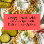 Keywords: pickle dip, fried pickle dip, dairy-free dip, party appetizer, creamy dip, Panko topping, ranch seasoning dip