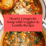 Keywords: longevity soup, vegetable soup, healthy soup, lentil soup, vegetarian soup, easy soup recipe, plant-based soup