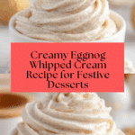 Elevate your holiday desserts with this rich and flavorful Eggnog Whipped Cream. Combining creamy whipped cream with classic eggnog and a hint of rum extract, it’s a festive topping perfect for pies, cakes, and hot drinks.