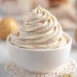This Eggnog Whipped Cream recipe is a festive and creamy topping that blends the rich flavors of eggnog, rum extract, and nutmeg into fluffy whipped cream. Perfect for elevating your holiday desserts, coffees, or pies with a seasonal touch.