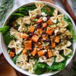A vibrant fall salad featuring roasted butternut squash, tender bow tie pasta, and a zesty maple-lime dressing. This hearty salad combines seasonal flavors like pumpkin seeds, dried cranberries, spinach, and creamy goat cheese, making it perfect for a wholesome lunch or light dinner.