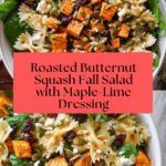 Keywords: fall salad, roasted butternut squash salad, maple lime dressing, autumn recipe, vegetarian salad, healthy pasta salad