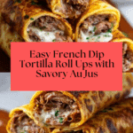 French Dip Tortilla Roll Ups are a delicious and easy-to-make twist on the classic French dip sandwich. Thinly sliced roast beef and melted mozzarella or provolone cheese are rolled inside warm flour tortillas, baked to golden perfection, and served with a savory homemade au jus sauce for dipping. Perfect as an appetizer, snack, or a quick meal.