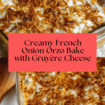 Keywords: French Onion, Orzo Bake, Caramelized Onions, Creamy Pasta Bake, Gruyère Cheese, Comfort Food