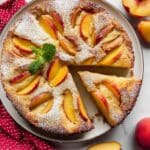 Keywords: Fresh Peach Cake, Peach Dessert, Summer Cake, Cinnamon Peach Cake, Greek Yogurt Cake, Moist Cake, Fruit Cake