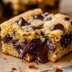These fudgy pumpkin chocolate chip bars combine the rich flavors of pumpkin and a blend of semisweet and dark chocolate chips for a moist, chewy dessert perfect for fall. Featuring a slightly spiced pumpkin batter with toasted pumpkin pie spice in melted butter, these bars offer a delightful balance of sweetness and spice, baked to perfection in a 9×13 inch pan.